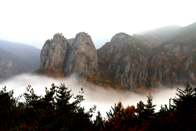 경상북도 청송에 위치한 주왕산은 우리나라를 대표하는 3대 암산 중에 하나입니다. 영남의 제 1의 명승지로 국립공원으로는 12번째 지정된 주왕산은 한눈에 보이는 웅장한 암봉이 멋진 산입니다. 화산 폭발로 인해 화산재가 용암처럼 흘러 내려와 쌓인 응회암으로 수차례 폭발로 겹겹이 쌓이면서 현재의 웅장한 암봉과 절벽으로 이루어졌습니다.